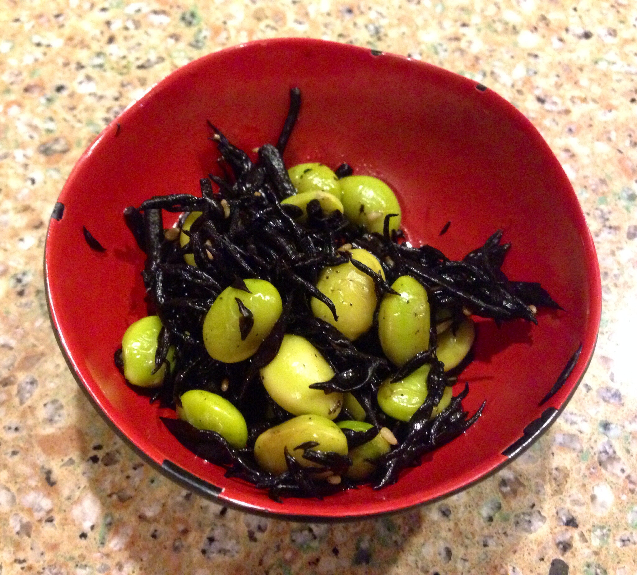 I sat at the 10-top sushi bar, which gives you a view of the sushi dishes being prepped by the very busy Japanese sushi Chef in front of you. Thoroughly enjoying a complimentary edamame and seaweed dish soaked in Japanese vinegar provided upon arrival (see below), I began my meal in a wonderful way. The vinegar was not overpowering and the dish was light to the palate. It was just what I needed to appease my appetite while I waited for the main dish I ordered.